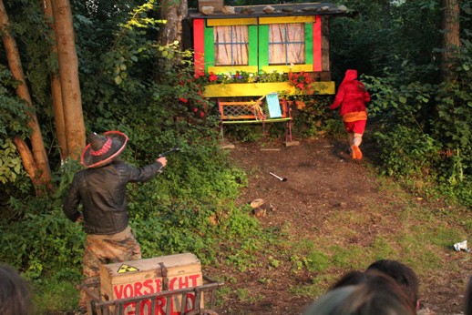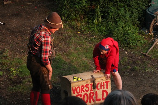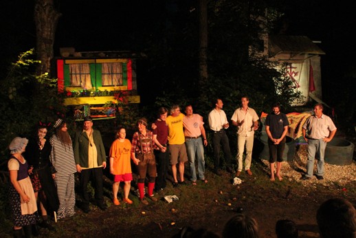 Alle Mitwirkenden an dieser VfbK-RiP-Produktion von links nach rechts: Lizzy McCarthy (Gromo, Unke, Fee Amaryllis), Justus Dallmer (Petrosilius Zwackelmann), Matthew McCarthy (Der Räuber Hotzenplotz), Alex Lehmann (Alois Dimpfelmoser), Tatjana Gassl (Kasperl), Bella Thiel (Seppl), Matthias Kauffmann (Regie), Bernd Opperer (Bühnenbau), Peter Huber (Spielleiter, Bühnenbau), Stefan Breu (Tribünenbau), Thomas Dohle (PR, Tribünenbau), Lorenz Schmid (Special Effects), Rainer Sailer (1. Vorstand, Produzent) + Helene Opperer (Fotos)