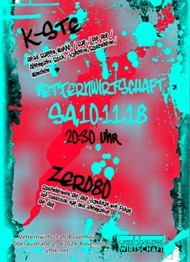 Der ZüNDFUNK, das Szenemagazin des BR / Bayern 2 Radio, sendet am 26. September 2015 live aus der Vetternwirtschaft in Rosenheim von 19 bis 20 Uhr.