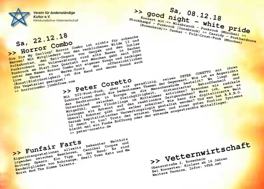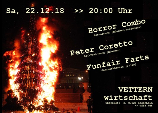 Konzert mit HORROR COMBO (Horrorpunk - München/Rosenheim) und PETER CORETTO DIY-(post) Punk und FUNFAIR FARTS Jahrmarktmusik aus Prien