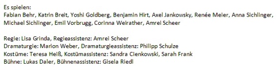 Regie: Dominik Frank Bühne: Lars-Keke Altemann, Stefan Natzel Dramaturgie: Ayna Steigerwald Regieassistenz: Ria Sommer, Anne Römeth, Manuel Baumann