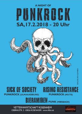 Konzert mit SICK OF SOCIETY (Punkrock aus Ulm) und RISING RESISTANCE (Punkrock aus Rosenheim) und DETTIFOSS (Stonerrock aus Trostberg)